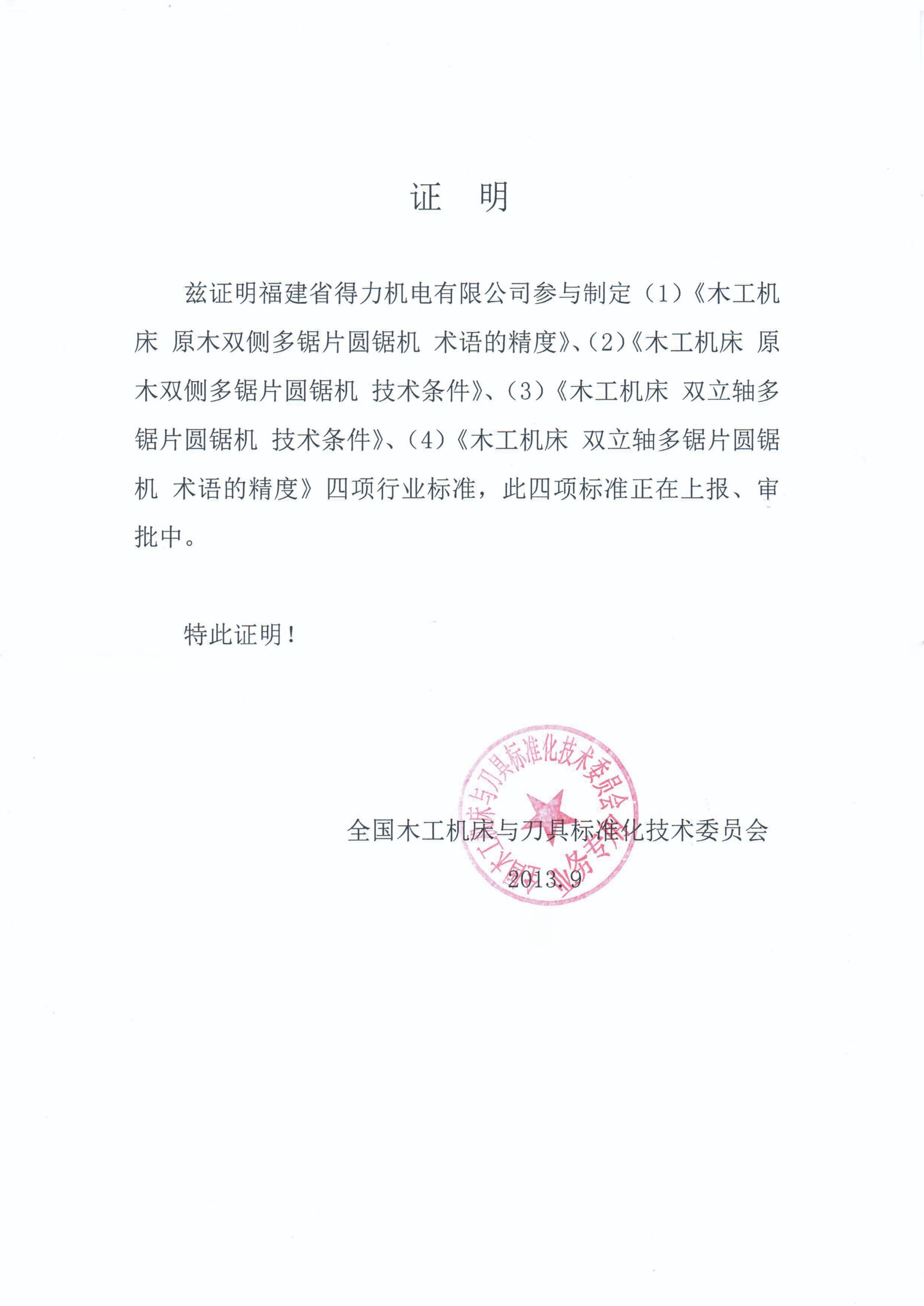 行业标准起草单位之一-证明